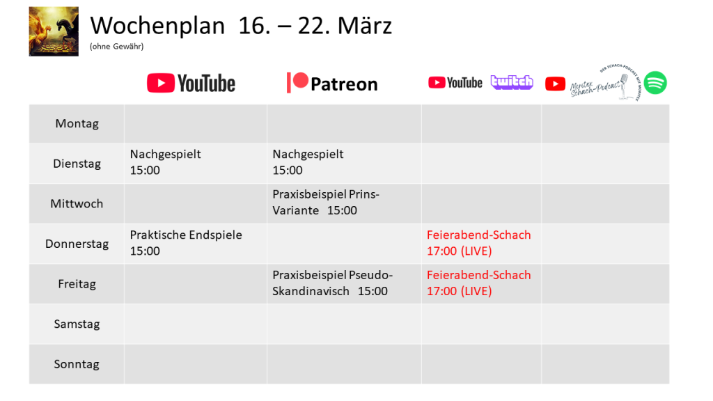 In den nächsten zwei Wochen gibt es keine Live-Streams, aber mehrere „Nachgespielt“-Videos (auf Youtube und Patreon).